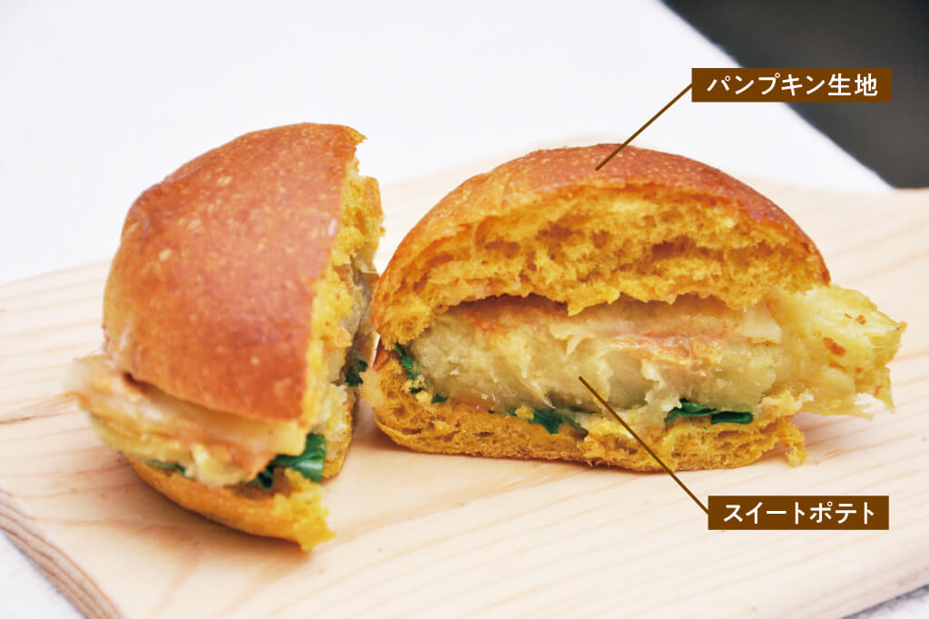 ほんのり甘いかぼちゃのバンズからはみ出す程の大きなスイートポテト!