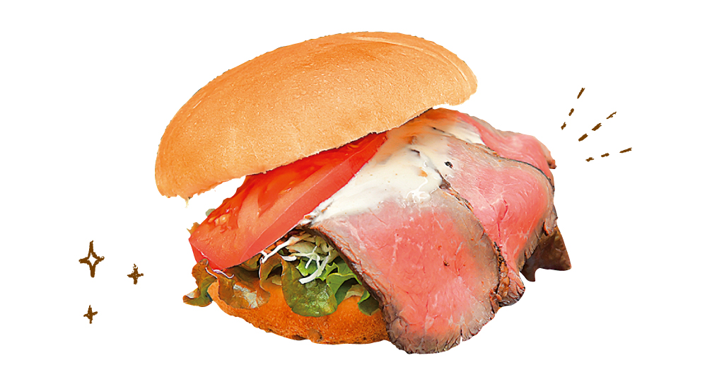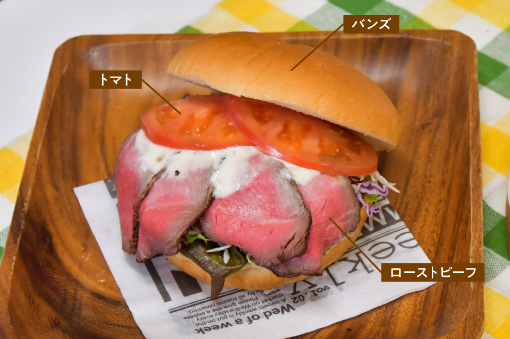 大きなローストビーフが溢れるインパクト大のバーガー!しっとりと柔らかいビーフは本格的でこれは満足度も高い。少し酸味のあるソースが味のアクセントになっていて、シャキシャキの野菜とも相性◎。