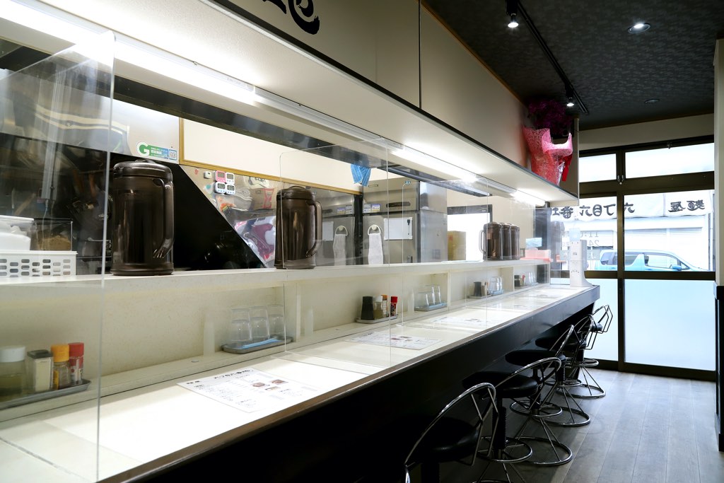 白い暖簾をくぐると店内は細長く、カウンター席の先にテーブル席がふたつ。注文はオーダー制とのことで、席に座ってメニューを…。