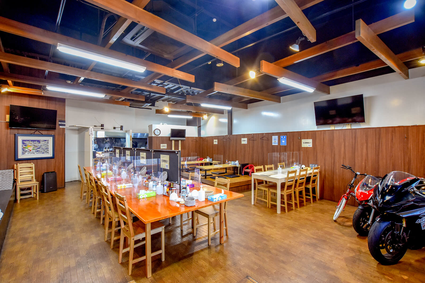 広々とした店内はテーブル席を中心に、カウンター席や小上がりもあり。