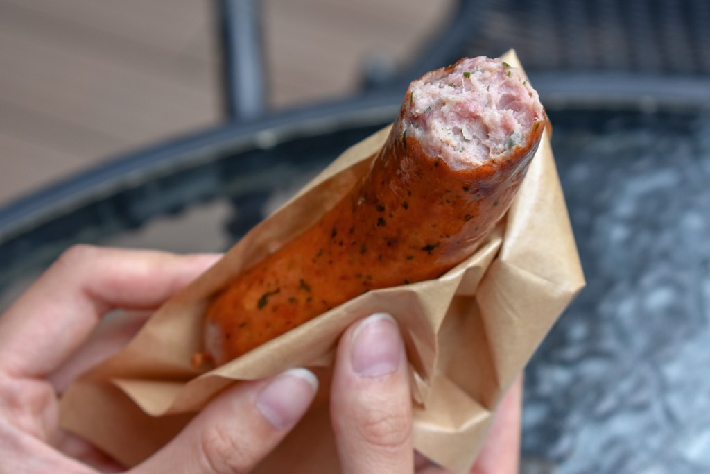 「甲斐甘味豚オレガノ粗挽き(無添加)」は、オレガノの爽快感のある香りが鼻を抜け、フレッシュなソーセージのパリっとはじけるような食感がたまらない…!