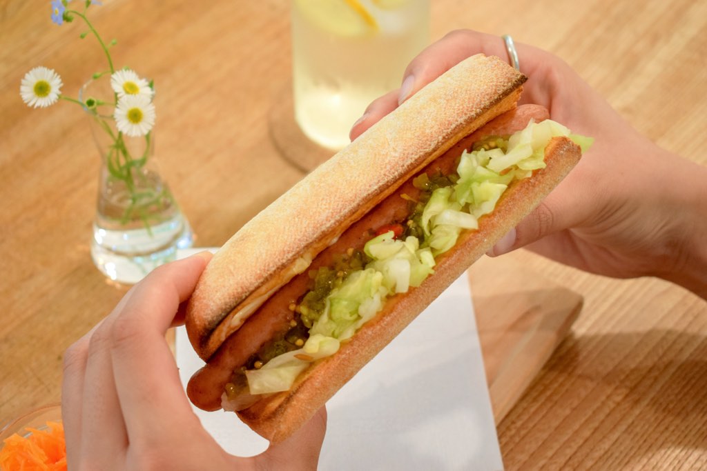 中でも、定番人気のサンドウィッチ「キャベツとソーセージ」と「レモネード」をチョイス。