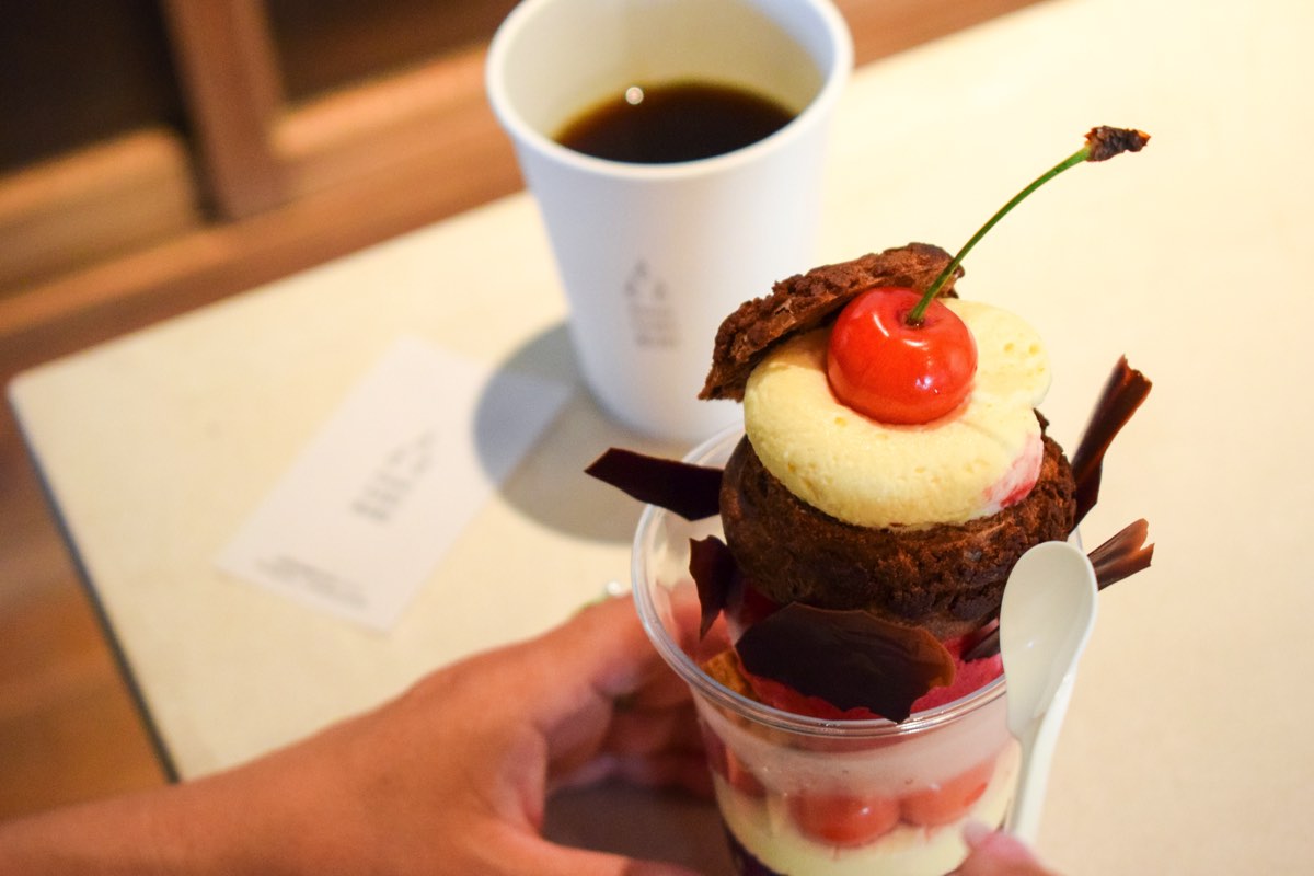 ストーリーを感じさせる美しいさくらんぼのパフェと、こだわりのドリップコーヒー。