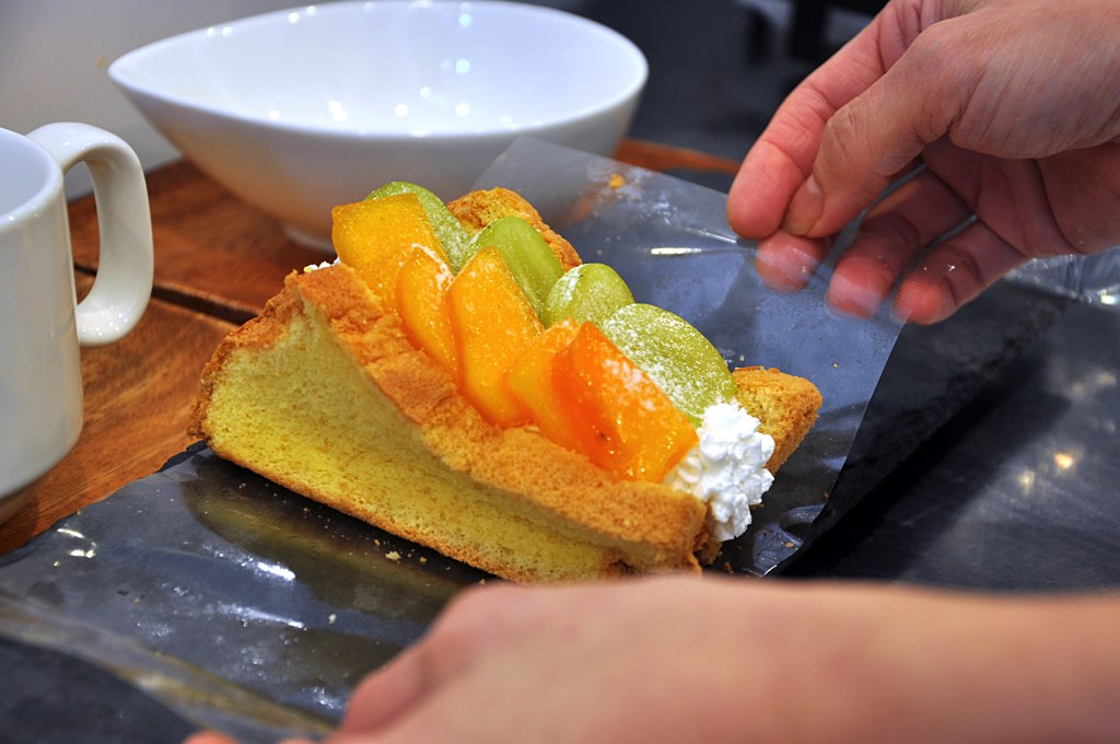 ひと口食べれば、フレッシュフルーツの自然な甘みとジューシーな旨味がジュワ~と広がり、まろやかでさっぱりとしたクリームたちがほわほわシフォンと共に包み込む。