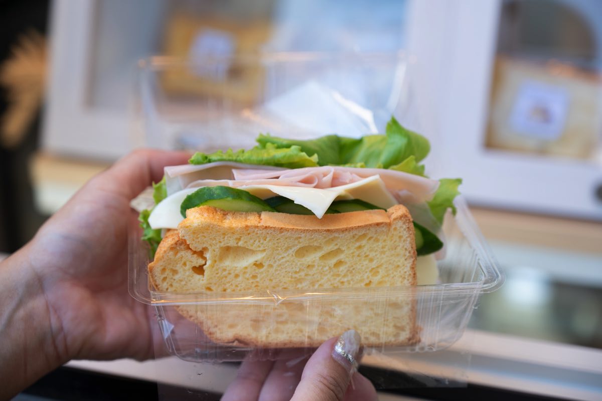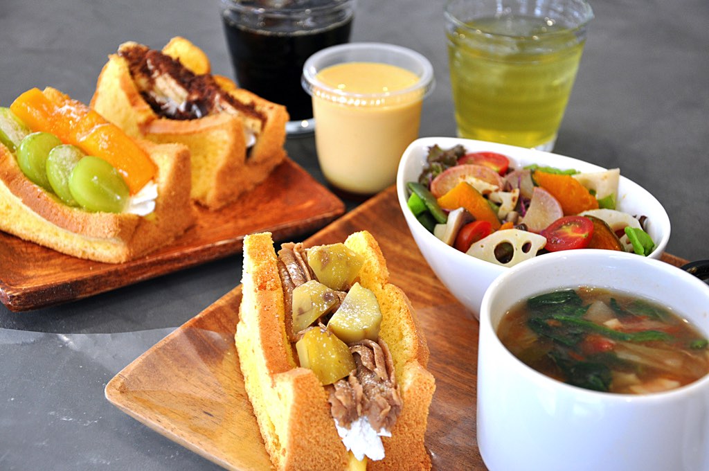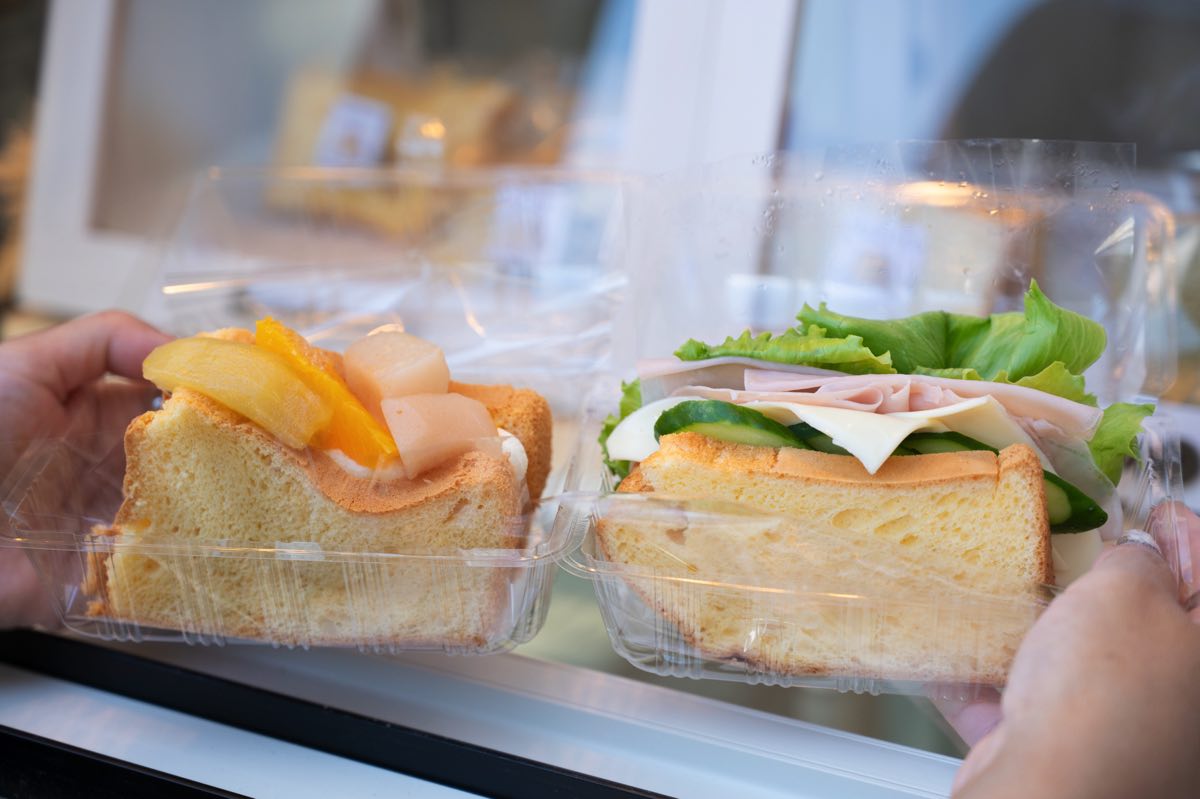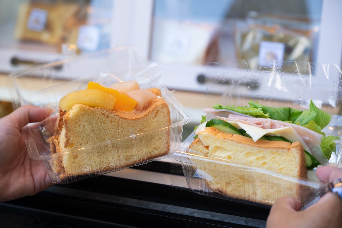 一方、ここでしか食べられないのが、こちらシフォンサンド。中に挟む具材によってシフォンケーキの生地も変えているというこだわりのサンドは、甘い系とお食事系が揃う。