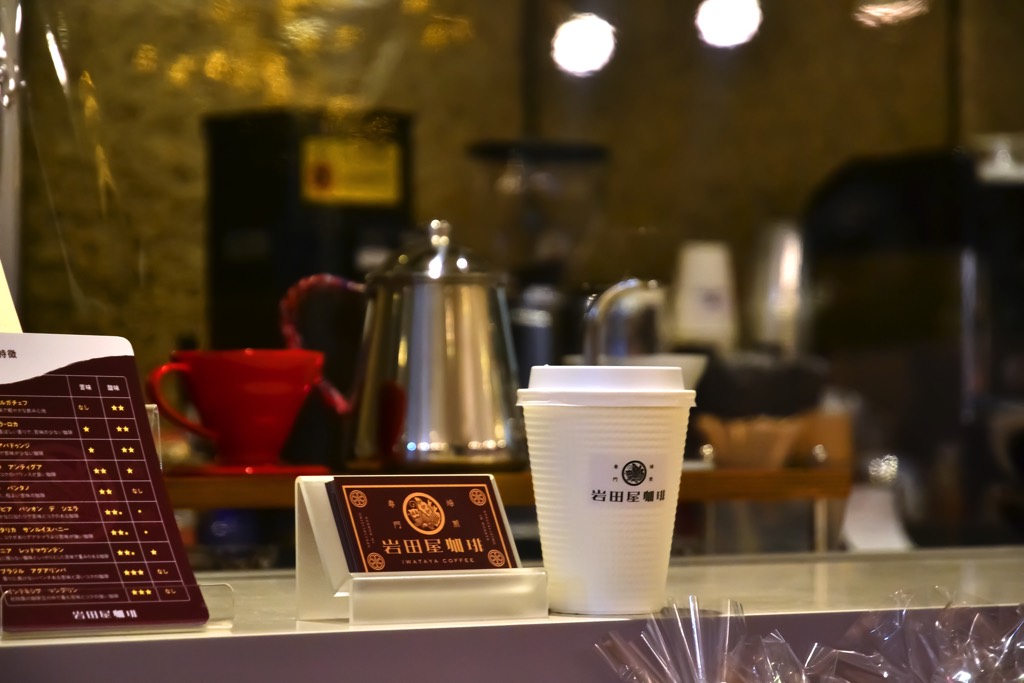 まずはここのカウンターでドリンクやフードをチョイスし、それぞれに会計する前払いシステム。フードコートみたいに、カフェラぺのフードメニューと熱風式自家焙煎専門「岩田屋珈琲」のドリンクを組み合わせてイートインできちゃうのだ。