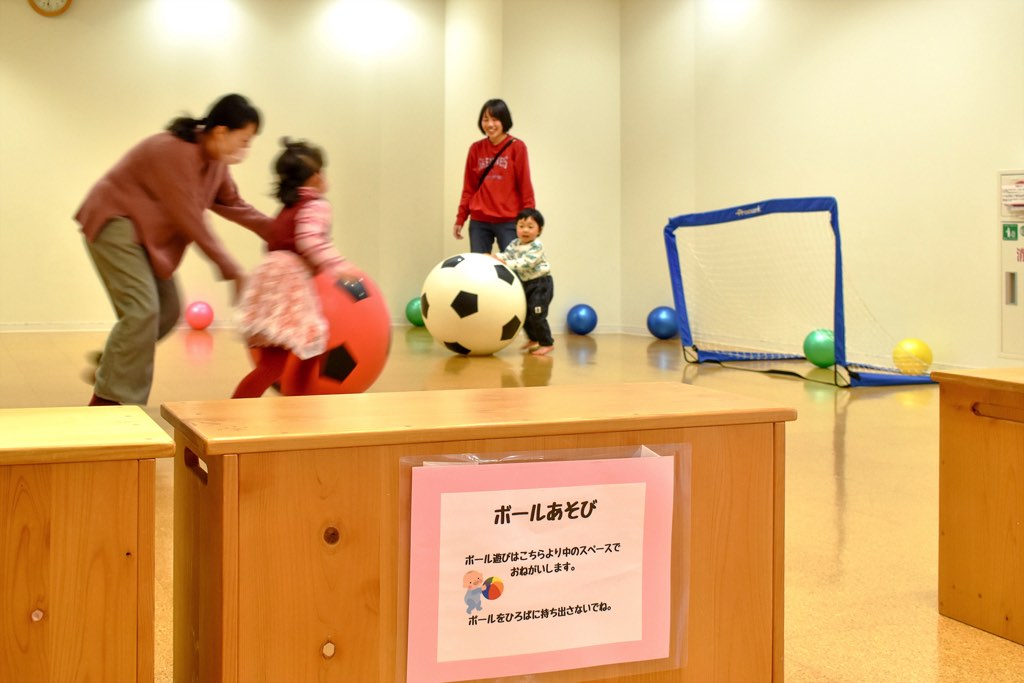 にら★ちびでは、他ではなかなかお目にかかれないボール遊びのエリアも設置。
