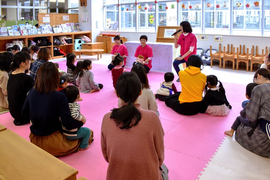 午前11時過ぎからのケロケロシアターでは、親子で歌あそびやパラシュートバルーン、季節のおはなしなど、スタッフさんがその日ごとに遊びを企画。