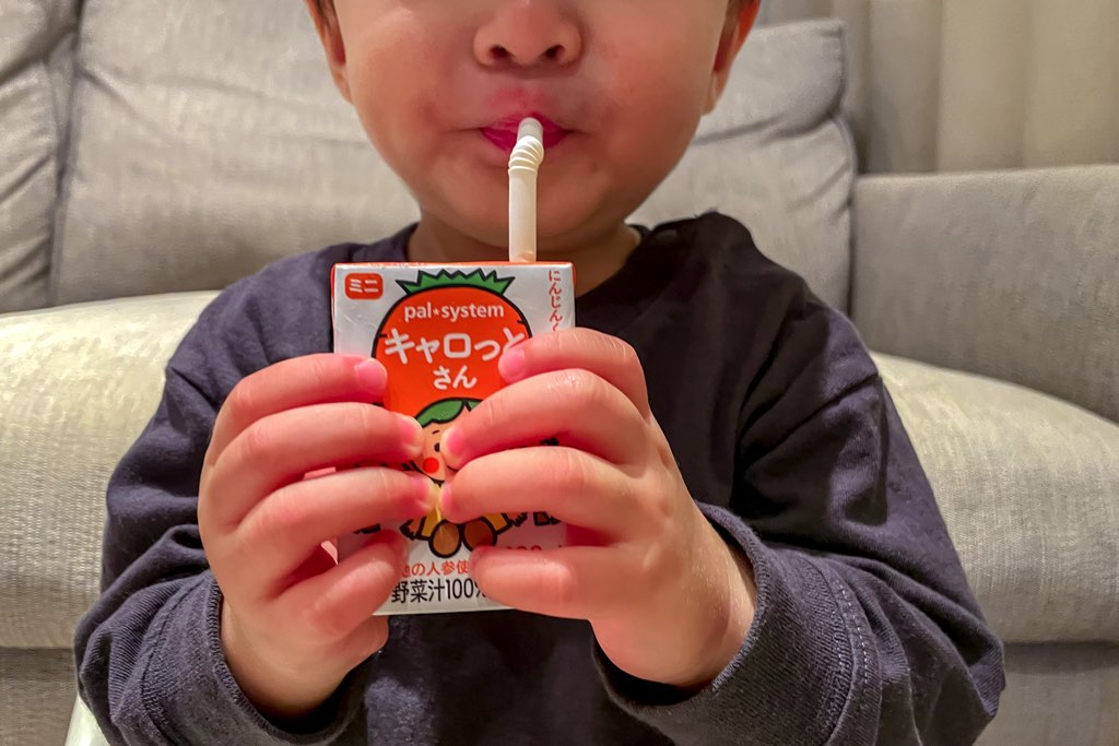 育園から帰宅したら、リビングでのジュースタイムが息子のお楽しみ!椅子を自分でもってきて、いつもジュース待ちしてます♪