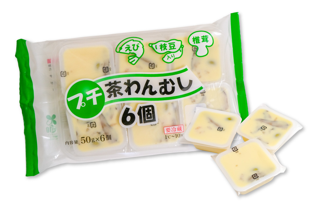 食べきりサイズの茶碗蒸しが6個入って、とってもお手軽。好き嫌いで難しいお年頃の子どもがよく食べてくれるので、あと1品というときに欠かせない~。しいたけ、えび、枝豆入りの優しい味。