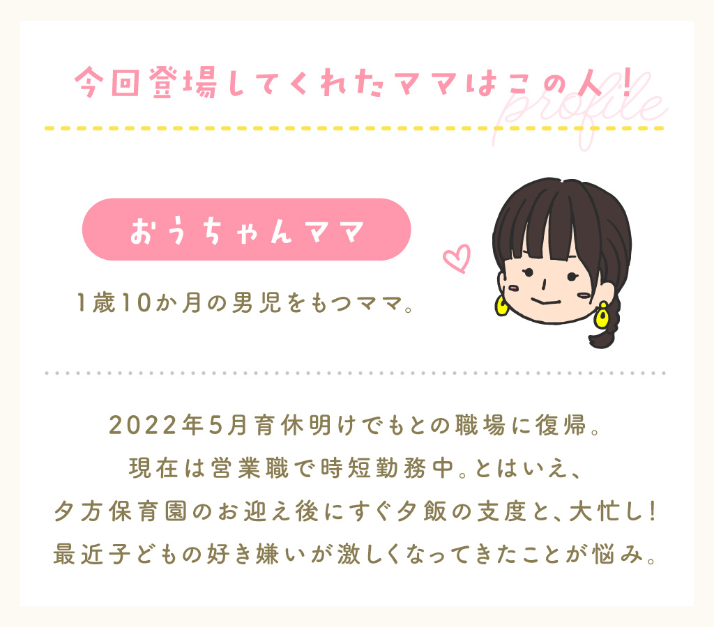 産休・育休を経て、職場復帰したばかりのおうちゃんママ。出産して一気に子ども中心の生活へと激変!1歳10か月の子どもの育児と仕事、家事の両立に奮闘するママのパルシステム活用術を一挙ご紹介~。