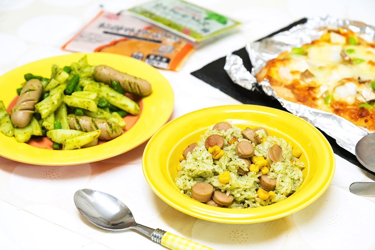添加物の少ないポークウインナーで安心感あり。冷凍のパスタソースでちょっぴり上品なのに、簡単にできちゃうお手軽サブメニュー。
