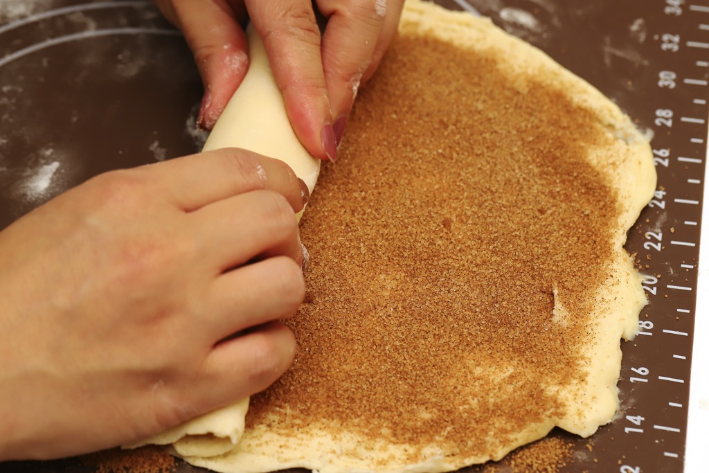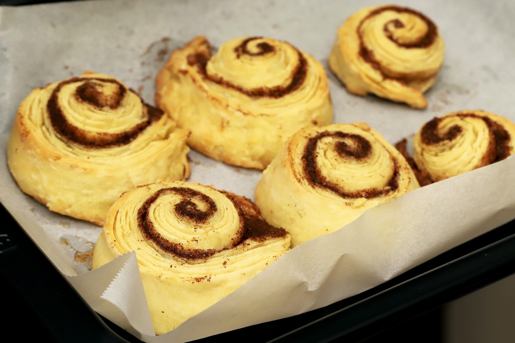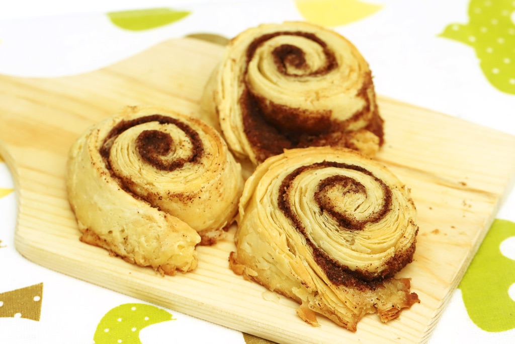 発酵いらずで作れるシナモンロール。折り込んだ生地はパイのような食感で、子どもも大喜び!