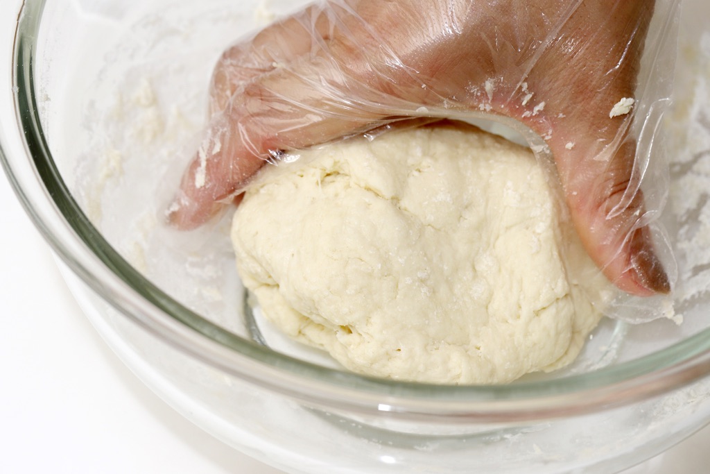 手につく場合は、片栗粉を手に薄くまぶして。ポリ袋に材料を入れて混ぜると、手も汚れず便利!