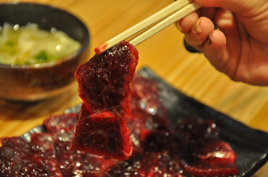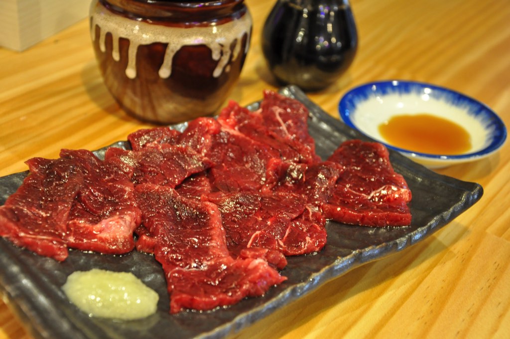 今回は、ニンニクすりおろしをのせて、さっぱりとゴマ油と塩でいただくことに。まったく臭みがなく、マグロや牛刺しに近い味わい。