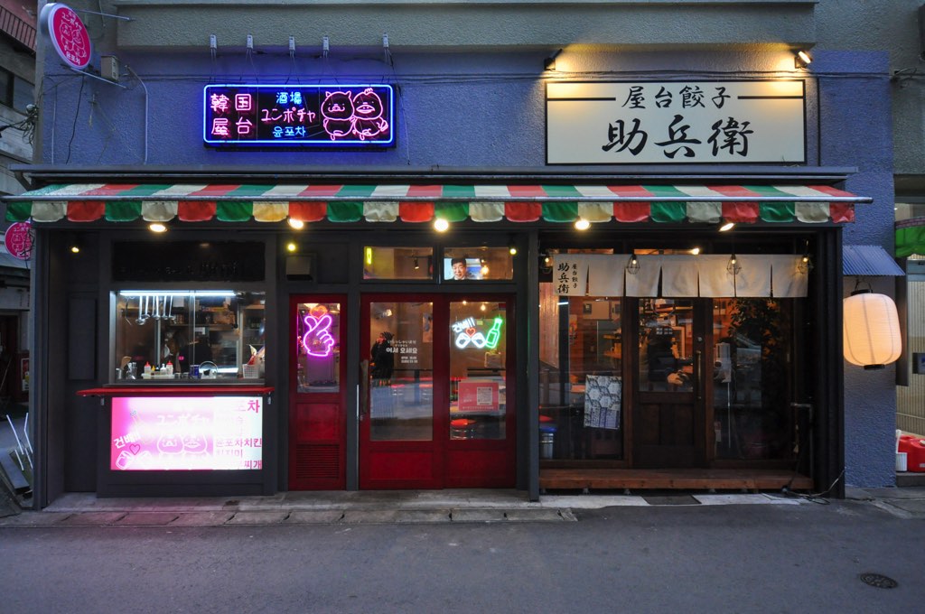 立地柄、出張や仕事帰りにぶらりと立ち寄る人が多いんだとか。隣の「ユンポチャ」とは中で繋がっているというちょっと珍しいスタイルだ。