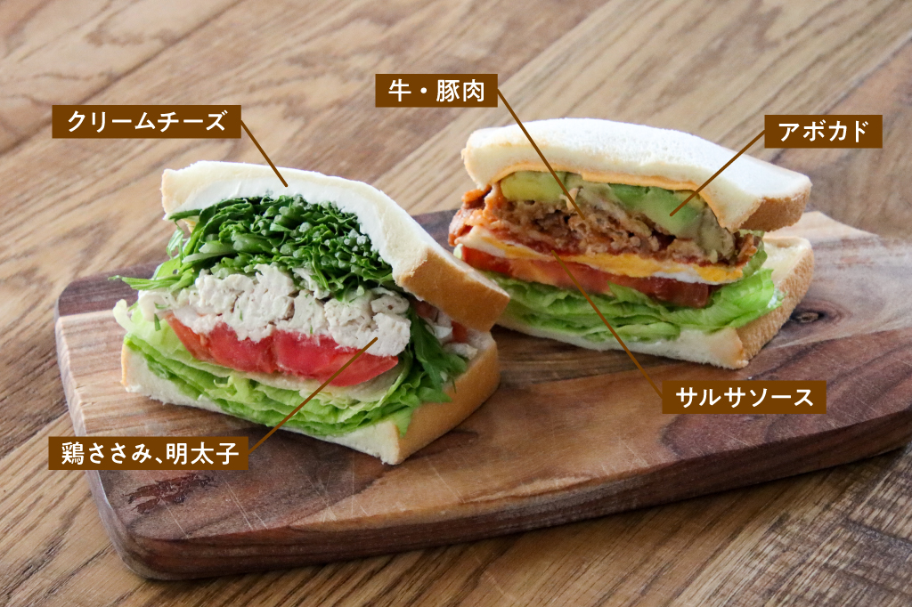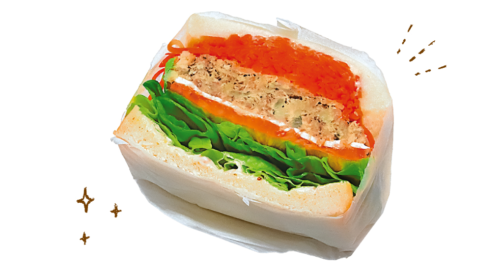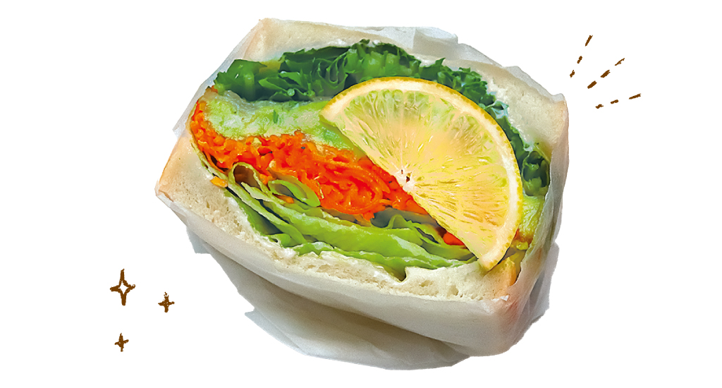 断面の美しさとそのボリューム感に加え、サンド1つでも野菜が十分に摂れると評判のFUJISAND。数あるラインナップの中でも、さっぱりとサラダ感覚で食べられる生ハムアボカドディップは女子ウケNo.1の人気商品。オリジナルスパイスとトマトたっぷりのピリ辛サルササンドでエネルギーチャージするのもおすすめだ。