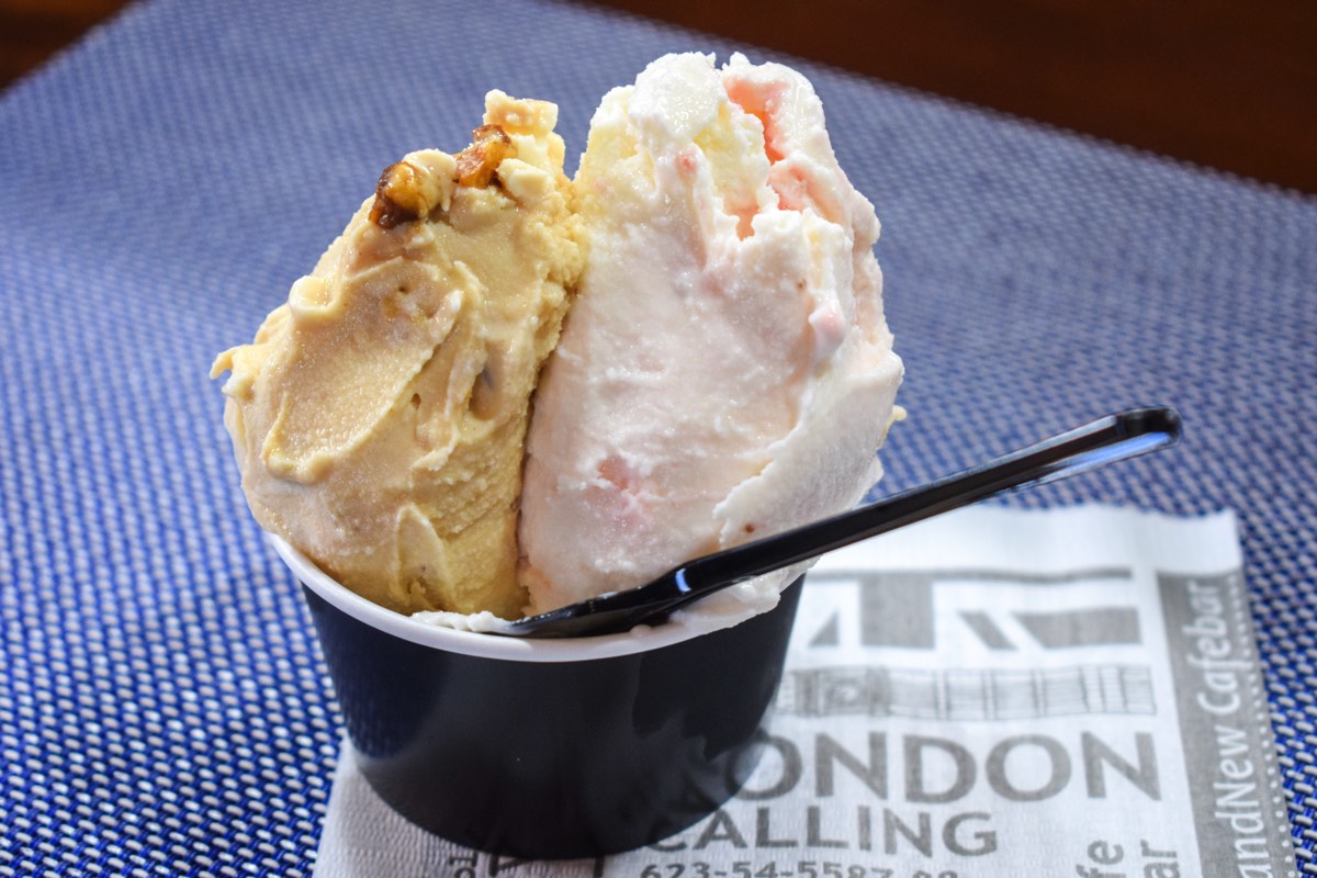 イタリアではバルで少量のジェラートとアレンジコーヒーを楽しむのが文化ということで、私もコーヒーと共に味わってみる。