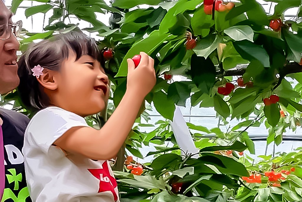 - 低い位置にもさくらんぼが生っているので幼児も手が届きやすい