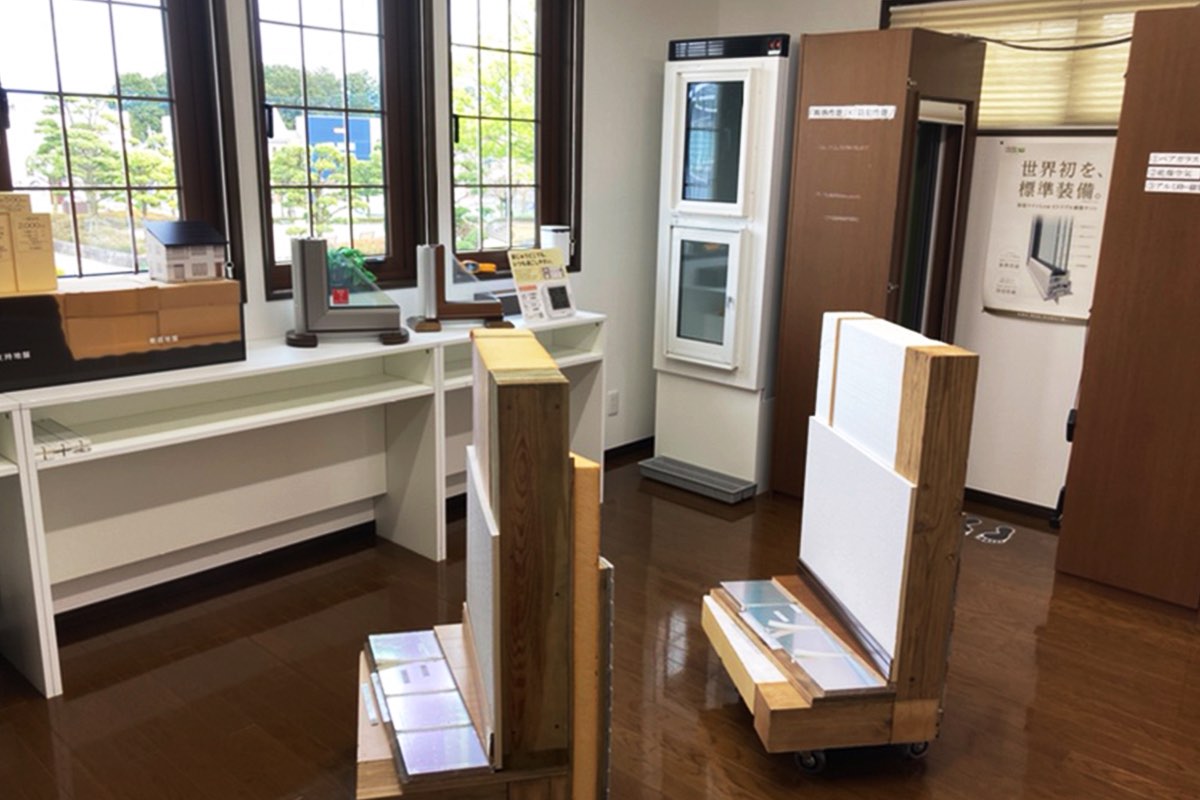 一条工務店の特徴である圧倒的な高気密・高断熱の体験ブース。調べてもわかりにくい窓や断熱材の性能を肌で感じることができる。視覚的な資料で分かりやすく解説しているので、親子で一緒に家づくりを学んでみては。