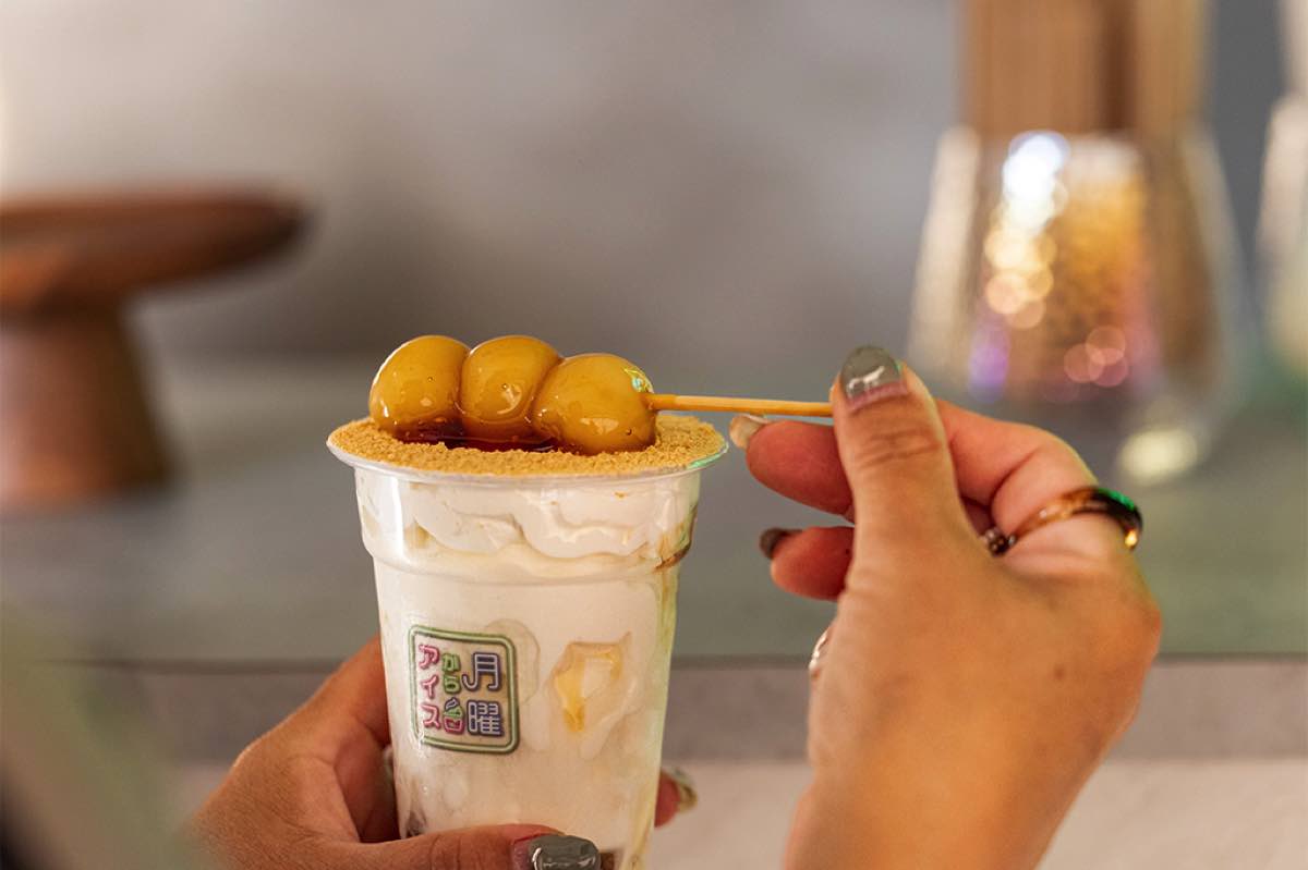 ふわもちのみたらし団子がなんとも本格的!きなことアイスにぐいっとつけて食べても、これまた甘じょっぱさがクセになる。