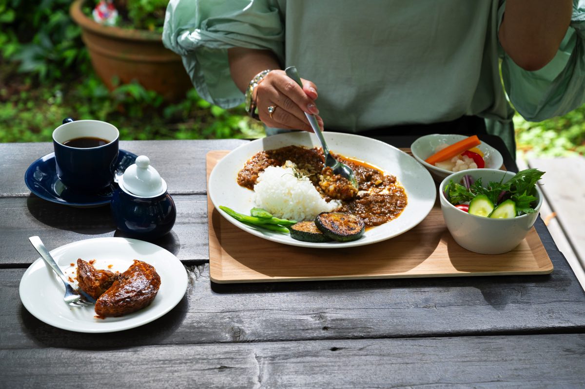 増設されたテラス席で高原の風に吹かれながら、絶品カレーを堪能しにいざ。