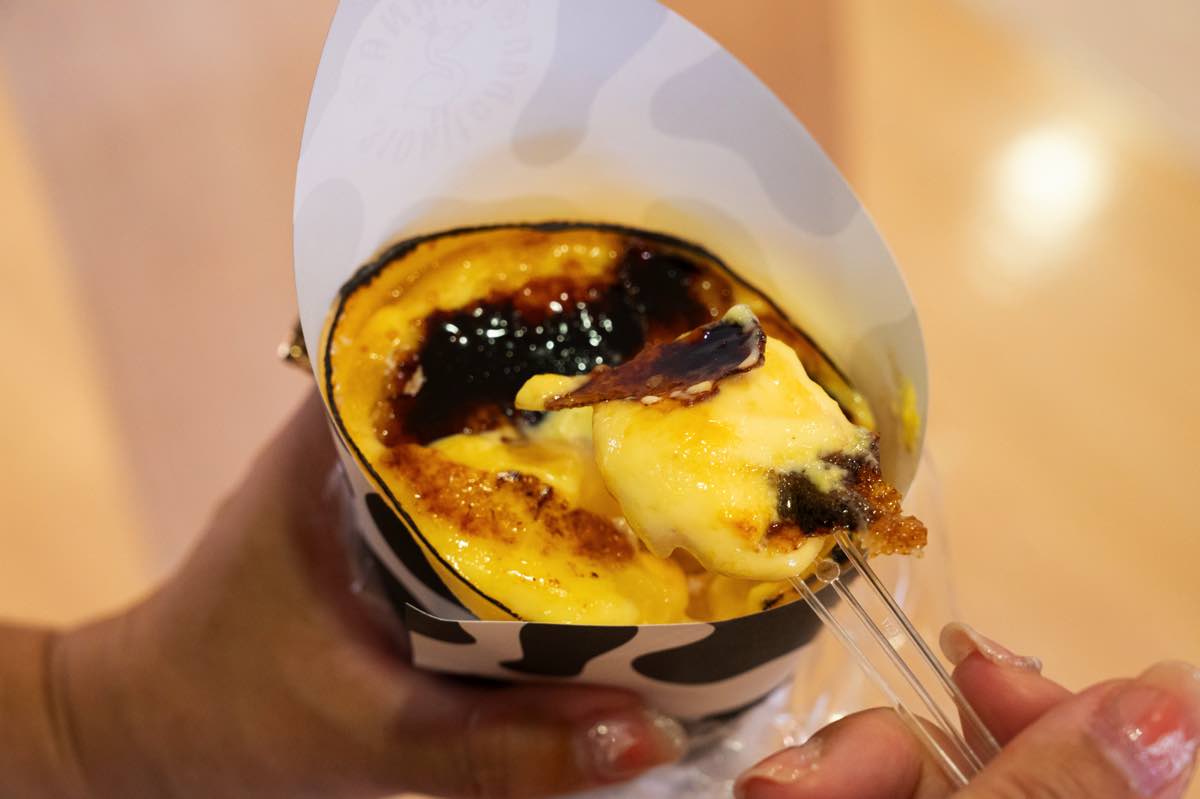 表面をバリっと崩せば、中からはとろ~り自慢のカスタードが。濃厚クレームブリュレの満足感はケーキそのもの!