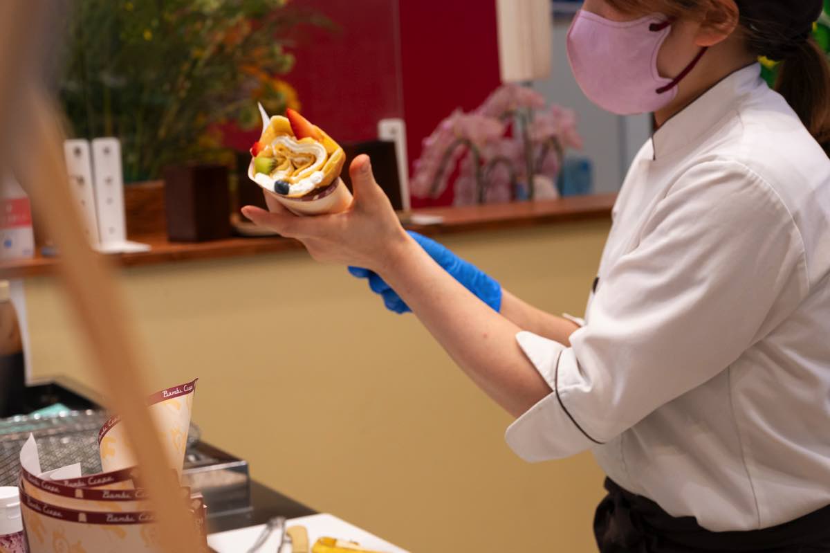 バンビクレープは長野県発祥のクレープとタピオカのお店で、信州産の寒天を練り込んだもちもちの生地が特徴だ。