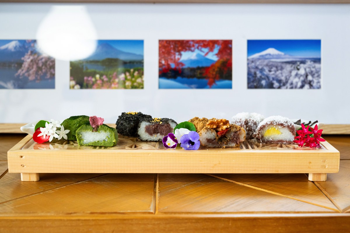おはぎ屋もともちでは、富士山の四季に見立てたオシャレなおはぎのほか、スタンダードなおはぎもいただける。さらに、イートインスペースでは円窓から覗く富士山を楽しめ、海外観光客にも大人気だ。富士山を一望しながらこだわりのおはぎとお抹茶と共に、ゆったりとしたひとときを過ごしてみては。