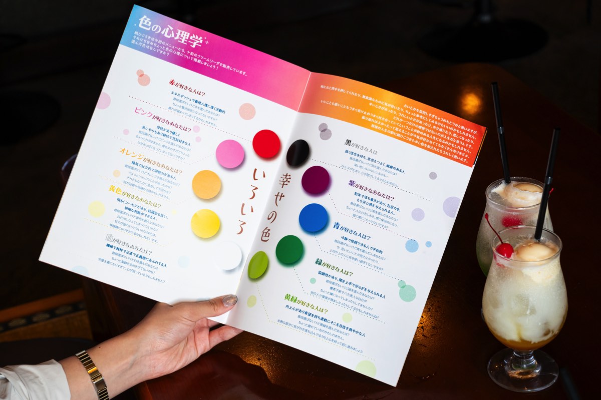 また、店内には色の心理学なる紙も用意されているので、心理テストをしながら過ごすのも楽しいかも♪