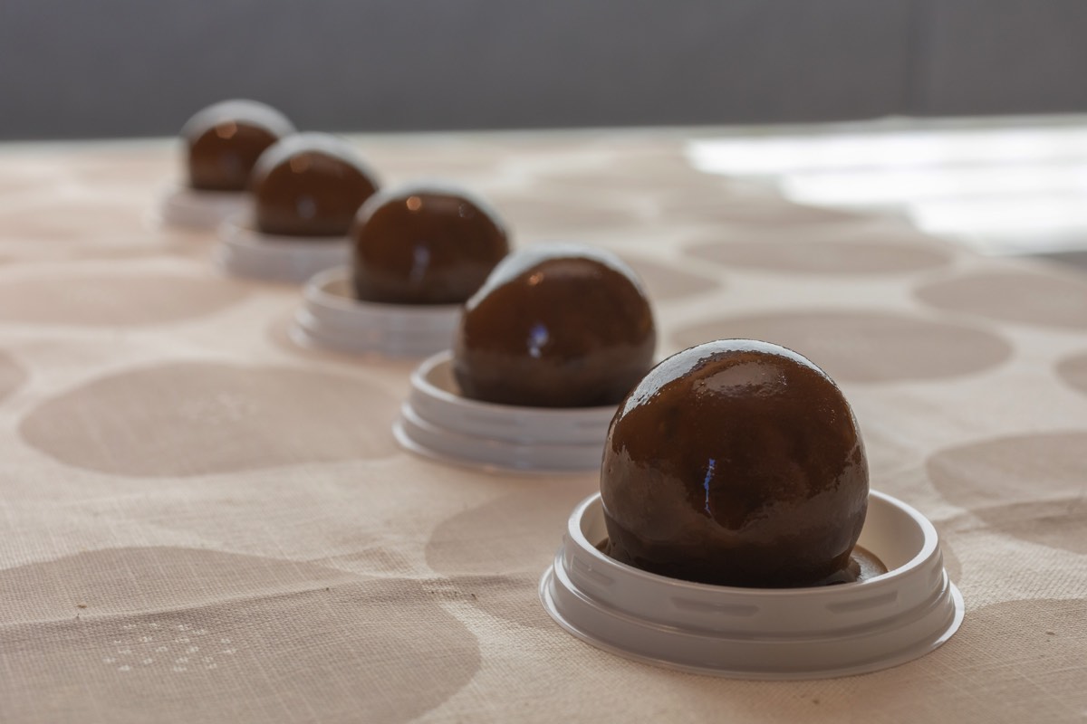 毎年どんなくり玉にするのかを話し合う中で、なめらかなぺーストのみで上品な美味しさを強めていくという選択もあったとか。最終的には、やはりごろっとした食感は楽しいから、昨年同様、ペーストの和栗と渋皮付き和栗を餡に入れることに。