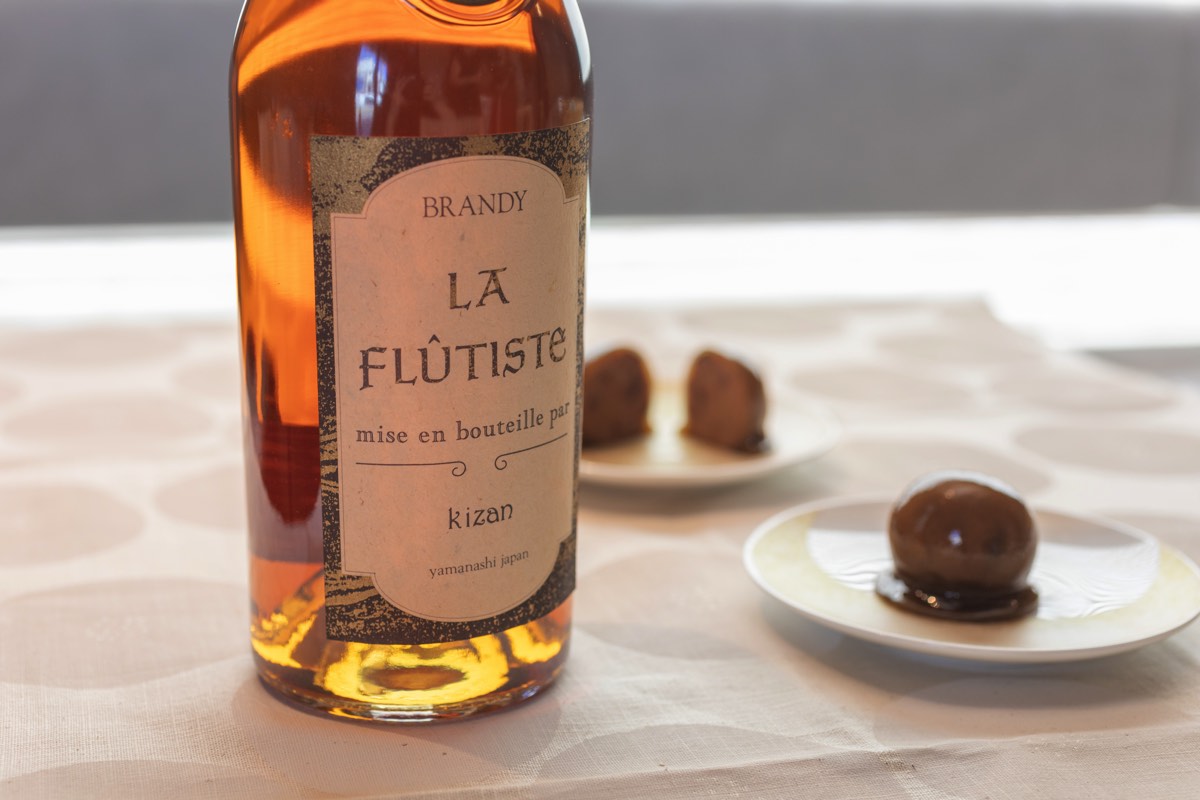 香りづけには、塩山市の機山ワイナリーの甲州ぶどうでつくったワインを自家蒸留し、20年以上樽熟成させたブランデー「ラ フリュテスト」を。強すぎると栗の風味を消してしまうし、香らなきゃつまらない…このブランデーのさじ加減がくり玉の深い味わいを支えているのだ。