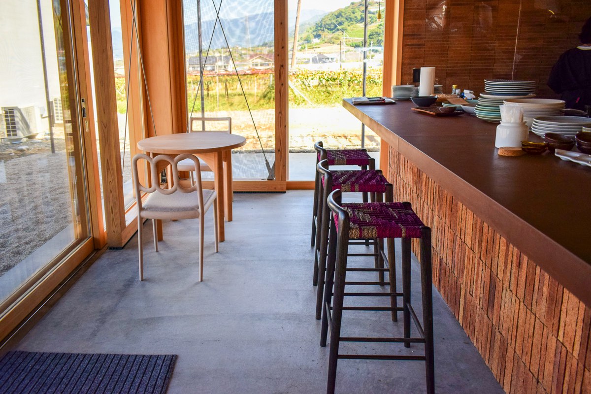 ぶどう畑に囲まれたロケーション抜群の「ヤギとライオン」は、昼はエスニックランチ、夜はワインとおつまみが楽しめる。大きな窓を配した開放的な店内には、スパイスのいい香りが漂い、鼻孔をくすぐる。