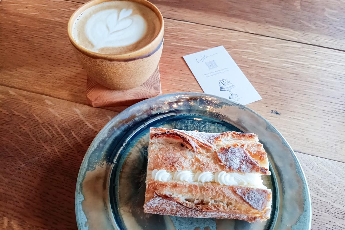 本日はカフェラテとこちらのミルクフランスをシェアしていただくことに。