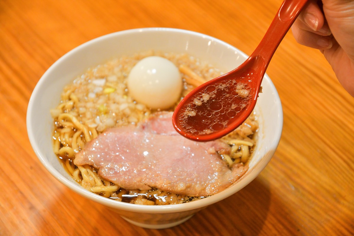 店内はカウンター7席、テーブル20席を配し、広々としているのでゆったりできそう。こちらでは大粒の背脂がたっぷり入ったラーメンが味わえ、醤油、塩、味噌など3つの味を軸に、ワンタン麺やチャーシュー麺など豊富なメニュー展開する。イチオシは「背脂醤油ラーメン」ということで、さっそく食べてみることに!