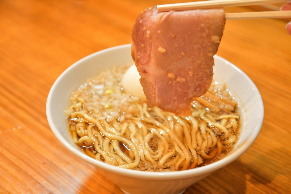じっくりと低温調理されたチャーシューはしっとり柔らかく、大きくて食べ応え満点。
