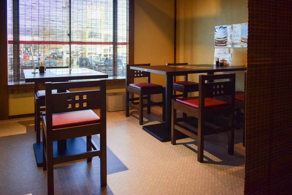 店内は2人席や4人席などのテーブル席で、仕切りがある半個室タイプの部屋もあり、こちらは10人ほどで使用可。小上がりの席もすべて土足でOK。