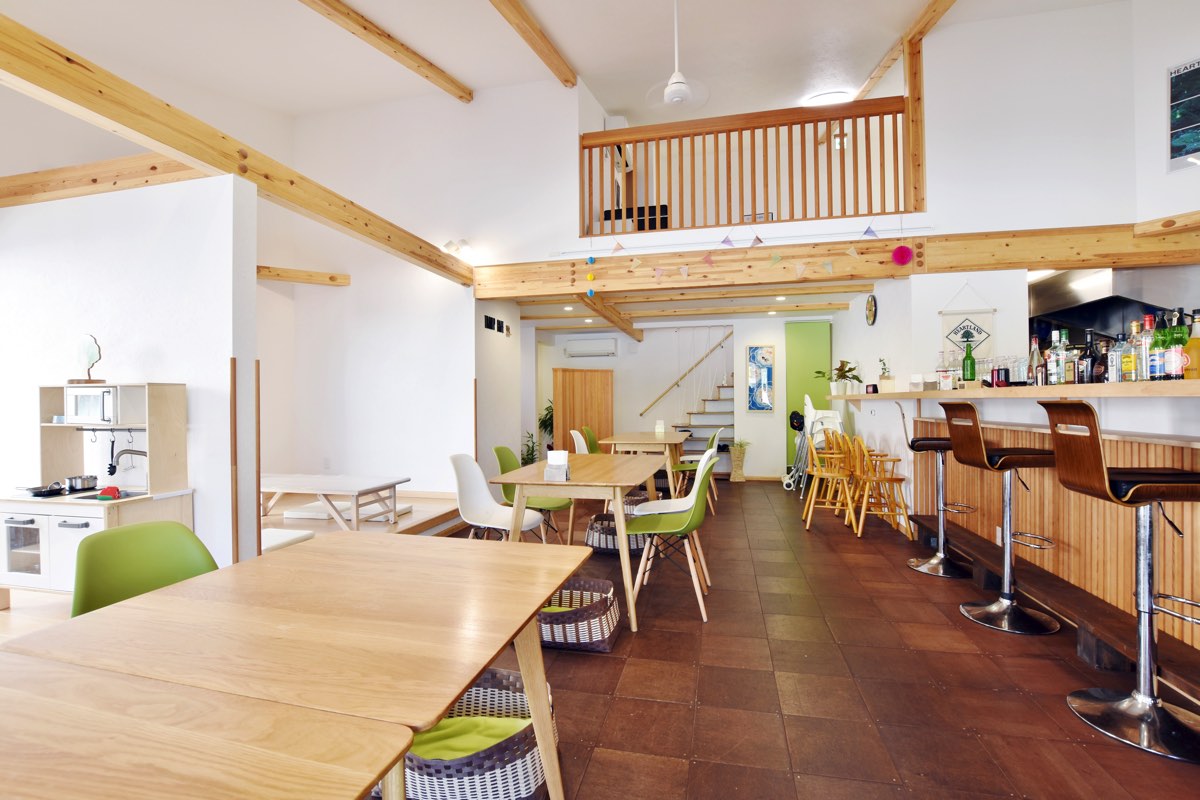 “子連れでも安心して外食を楽しんでほしい”というオーナー夫婦の思いから作られたカフェ。店内には広いお座敷席やテーブル席のほか、2階にはロフト席を配し、子連れママで賑わいを見せる。
