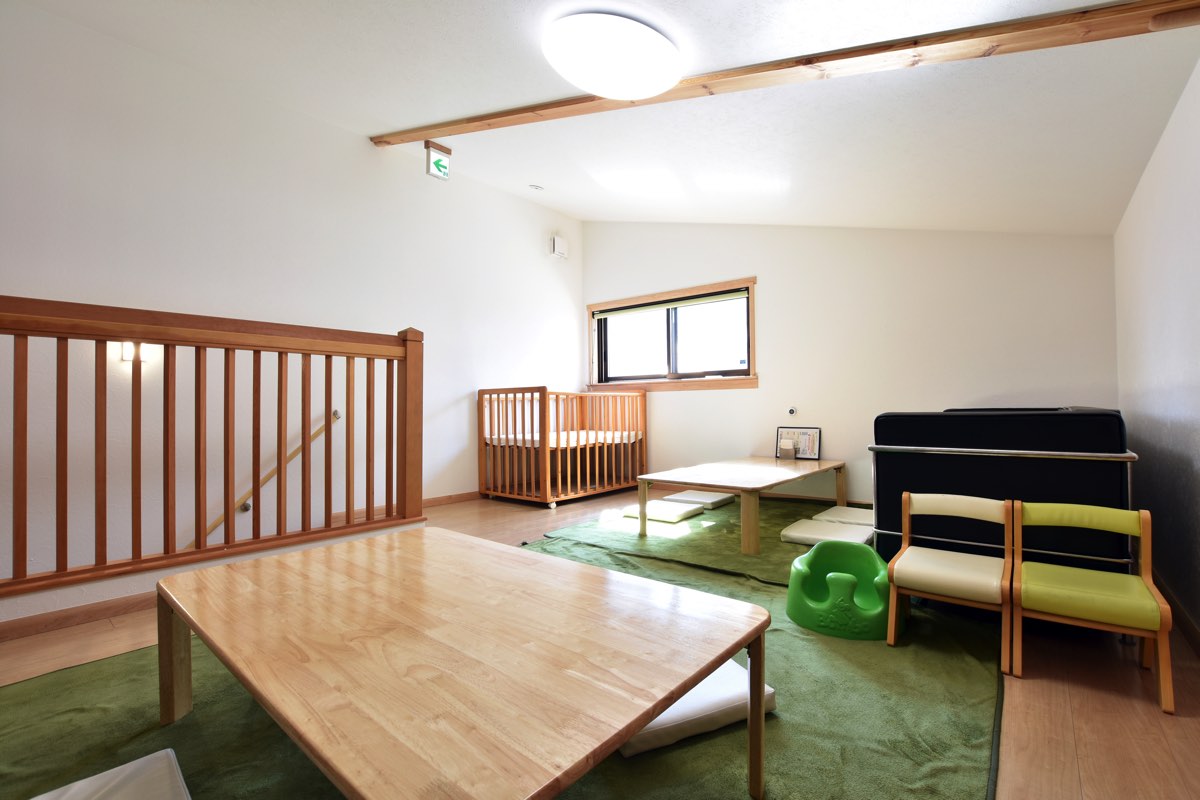 個室の授乳室やベビーベッド、子どもの月齢に合わせた離乳食(150円)の販売やミルク用のお湯の準備もあり、赤ちゃん連れも安心。さらに、子どもの発育状態に合わせた椅子の貸し出しもあり、まさに至れり尽くせり! - 人気の2階ロフト席!