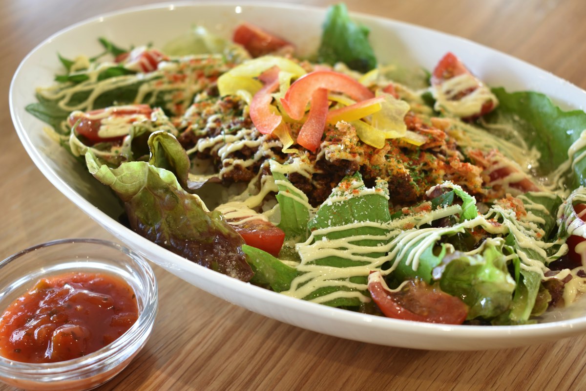 1番人気メニューは本格タコライス!スパイシーなタコミートとマイルドなマヨソースが相性抜群で、クセになる味わいに。酸味のあるサルサソースも良いアクセントになり、美味しくいただける。