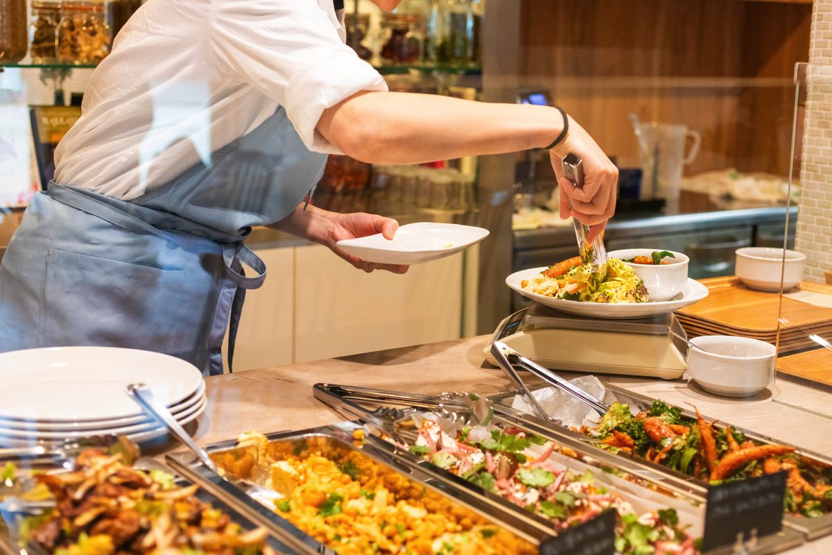 まず席を決めたら、メニューを選びにカウンターへ。お水やカトラリーなどはセルフサービスで、食後にまとめて会計するというシステム。