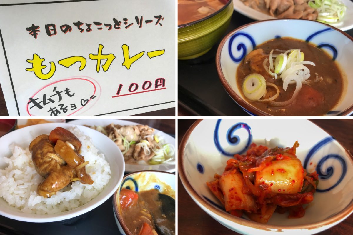 メニューは豚もつ煮定食のみで、ごはんの大盛りやもつ煮込みの大盛りが選べるほか、+100円で頼める“本日のちょこっとシリーズ”なるものも!本日はもつカレーとのことで、こちらもオーダーすることに。