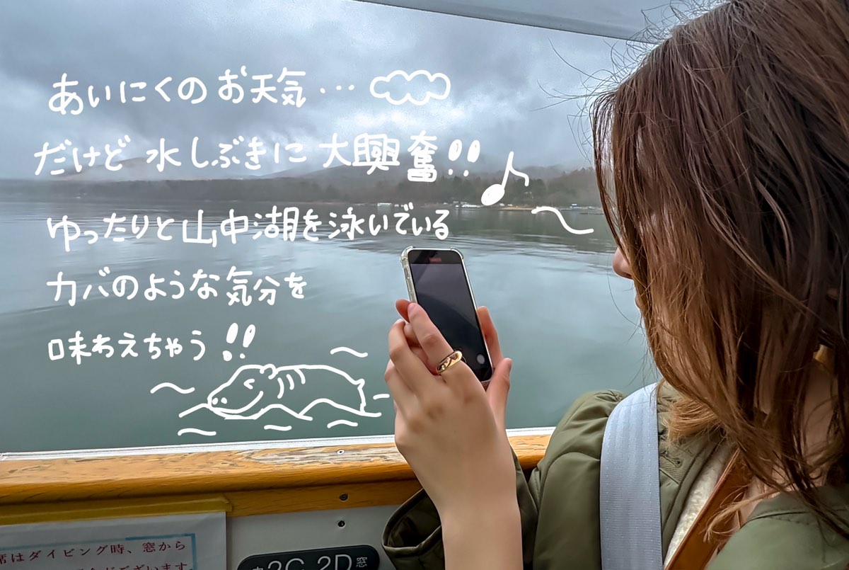 …そう、今日は山中湖に来る海外から県外の観光客まで幅広く大人気の水陸両用バス「YAMANAKAKO no KABA」へ乗車することに♡