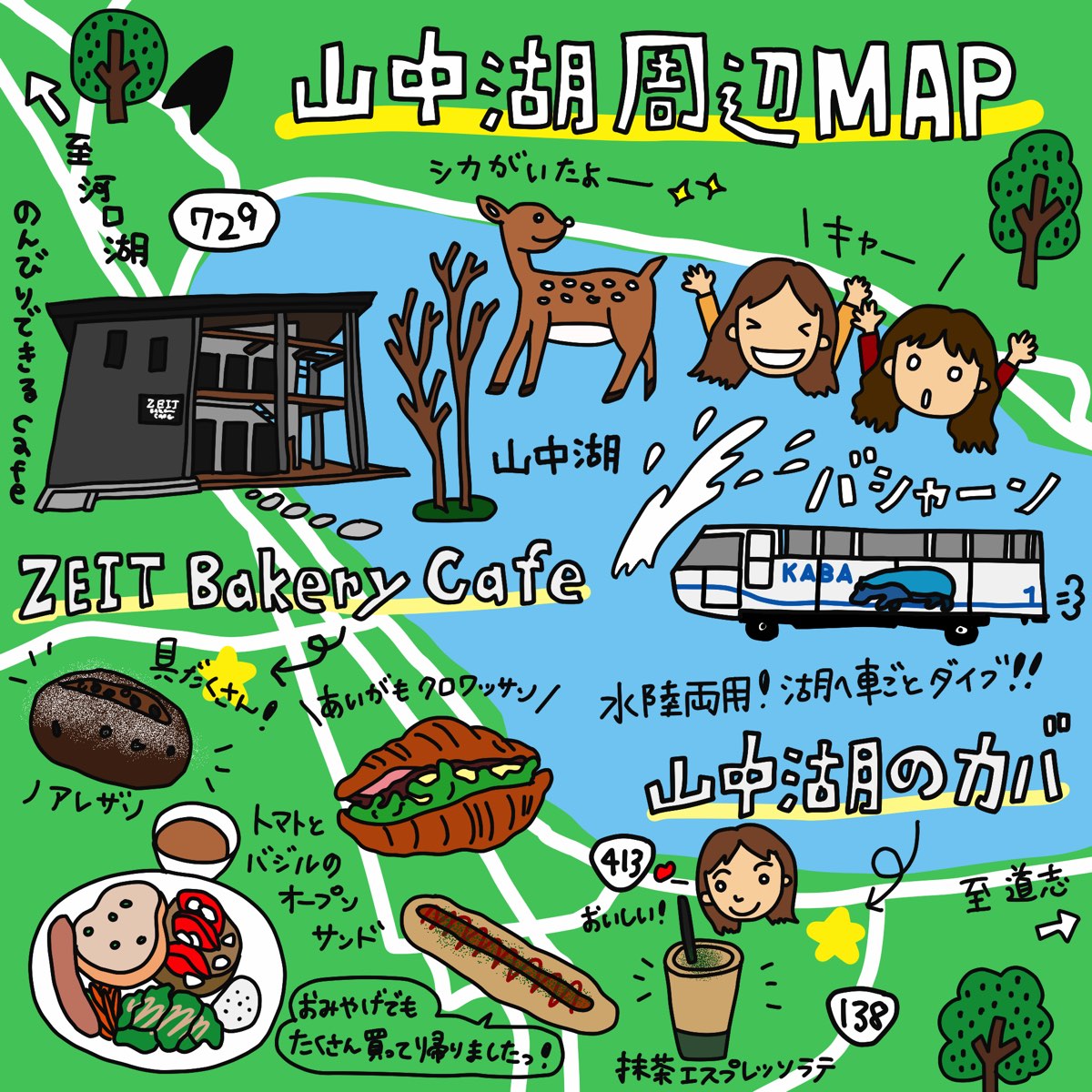 山中湖を見ながら湖畔でパンを食べるのもよし、のんびりとZEIT BAKERY CAFEで過ごすもよし。