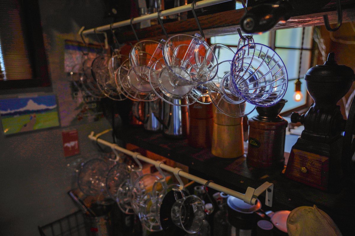 手廻しの小さな焙煎機で焙煎し、1杯ずつ淹れてくれる光さんのハンドドリップコーヒー。「手廻しの焙煎機で焼くのは業務用の焙煎機と違って安定はしないのですが、逆にその時にしか出せない味があっていいのかなって」と光さん。
