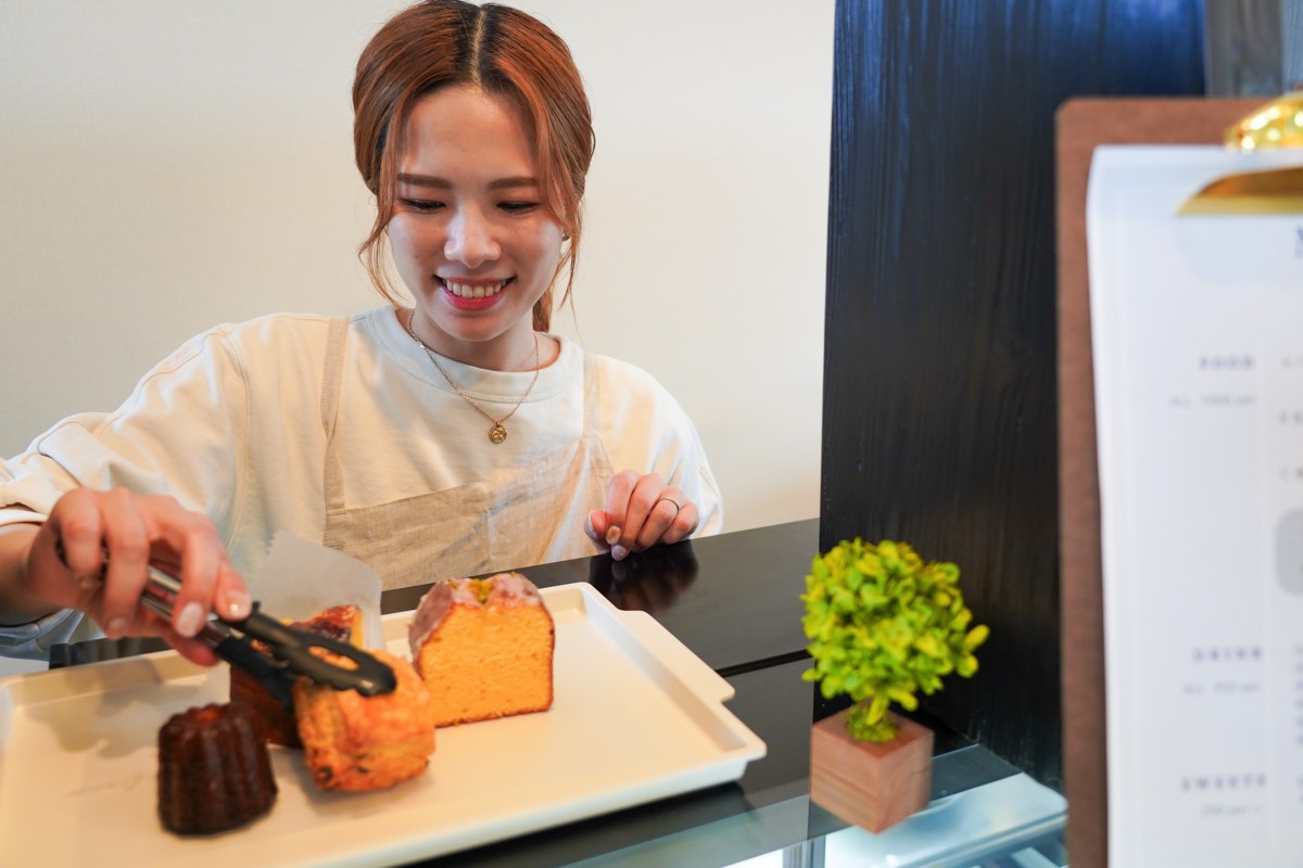 そのほか、焼き菓子の「カヌレ」と「フィナンシェ」は、毎朝店内で焼き上げるので、できたてが味わえちゃう。クッキーからケーキまで種類豊富にラインナップするので、おうち用はもちろん、ギフトにもぴったり。