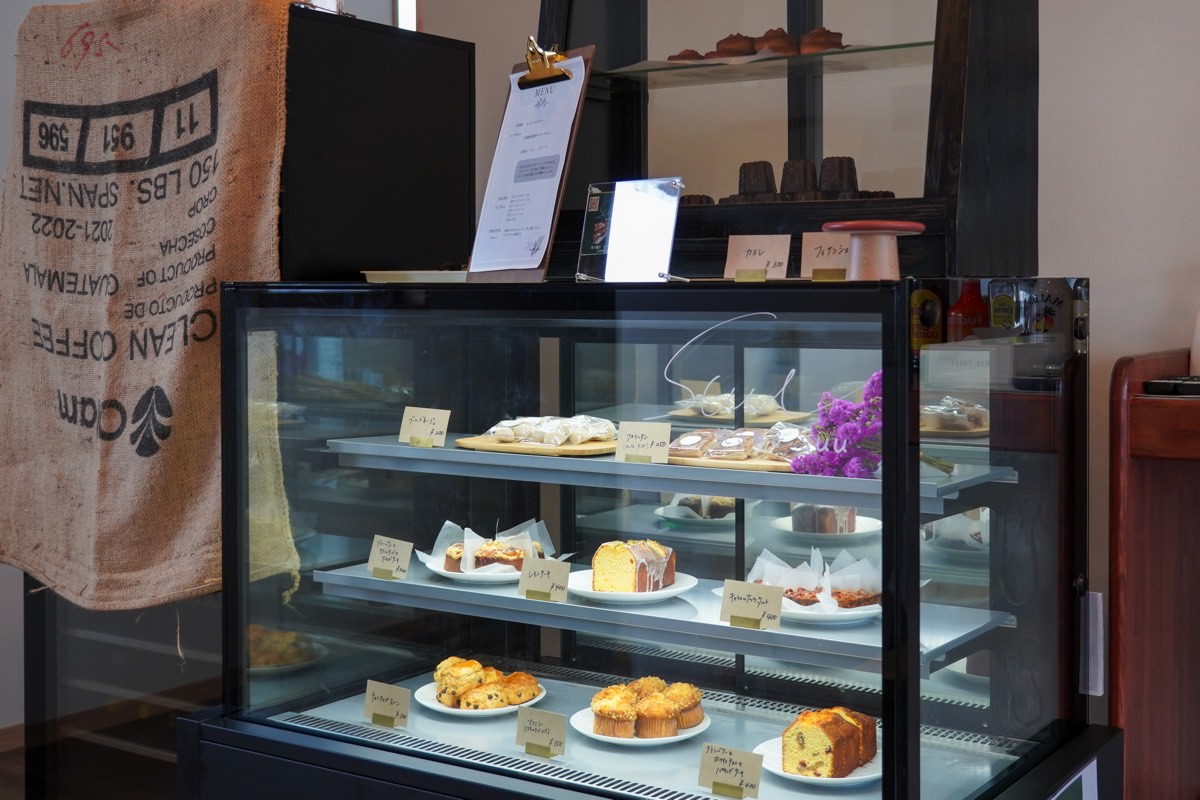 ショーケース内には、田中さんが心を込めて手作りする焼き菓子が並ぶ。素材にこだわるシンプルな味わいの焼き菓子は、テイクアウトも可能。