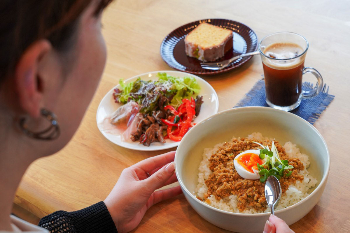 店内では、田中さん特製ランチをイートインでき、メニューは「バターチキンカレー」と「生姜香る和風チキンキーマカレー」、人気パン屋「ベーカリーポノ」の食パンを使用した「本日のトースト」の3種類。