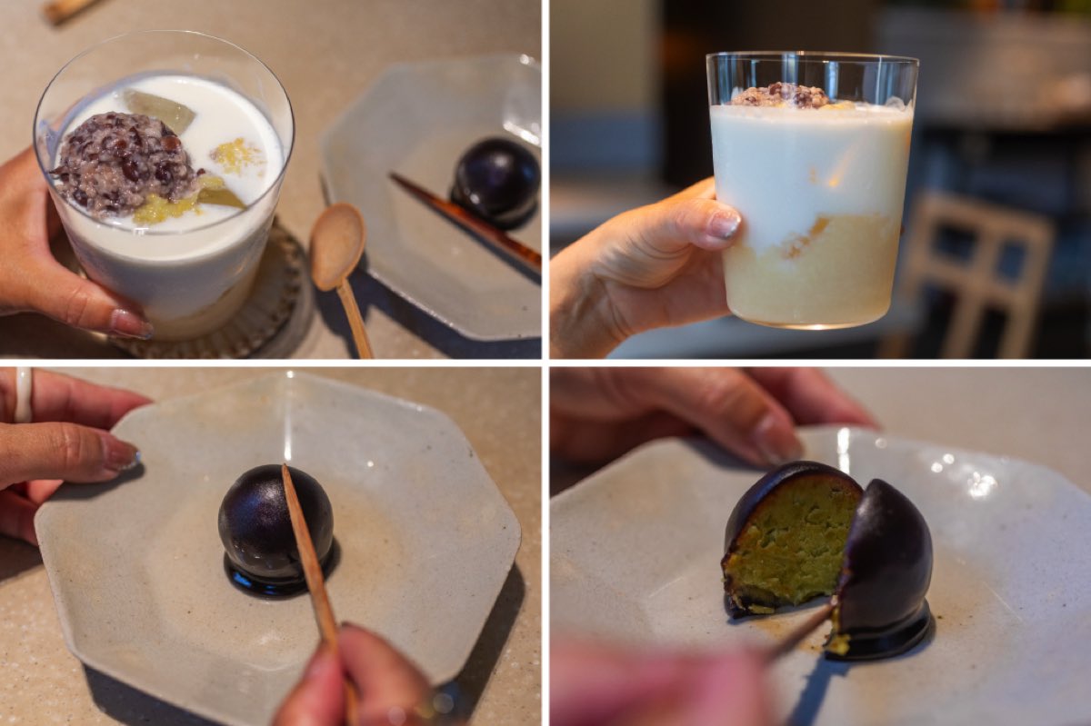 くろ玉の黒糖のコク、青えんどう豆の香り豊かな風味とまろやかな甘みが、あん糀の自然な甘みとレモンの酸味と掛け算になって、これは相性抜群だ。
