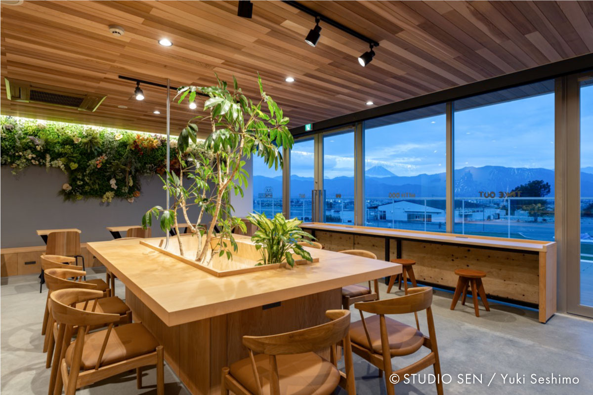 「LOCAL BASE(ローカルベース)」2階にあり、目の前には富士山を望み、南アルプスを一望できるロケーションが最高だ。